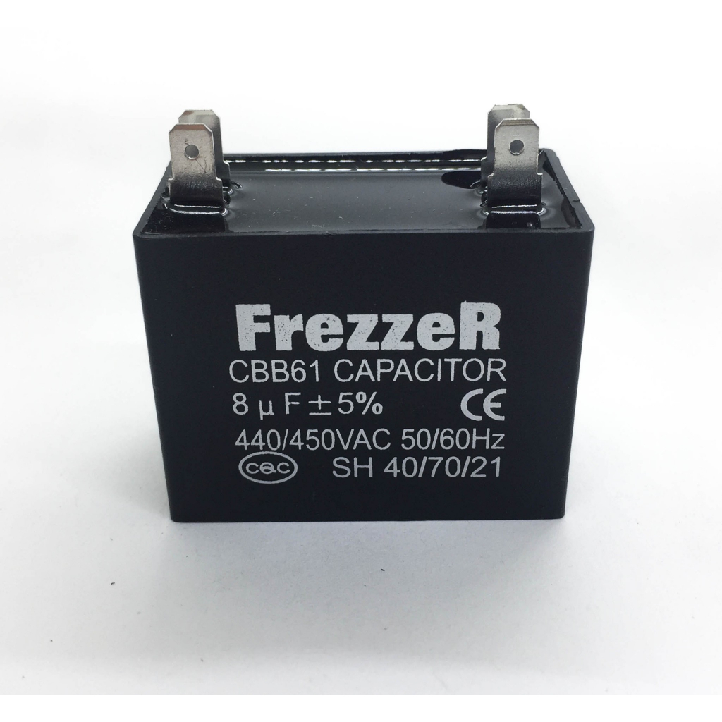คาปาซิเตอร์ “แคปพัดลม” 1.5 - 8 ไมโครฟารัด แบบเสียบ ยี่ห้อ FREZZER เกรดคุณภาพ สำหรับ เครื่องปรับอากาศ