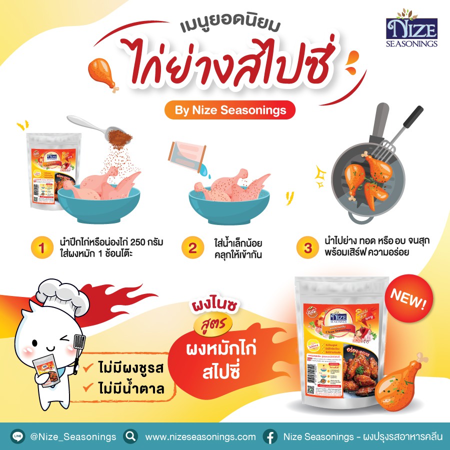 NIZE ผงไนซ ผงปรุงรสคลีน สูตรผงหมักไก่สไปซี่ (SSPI)
