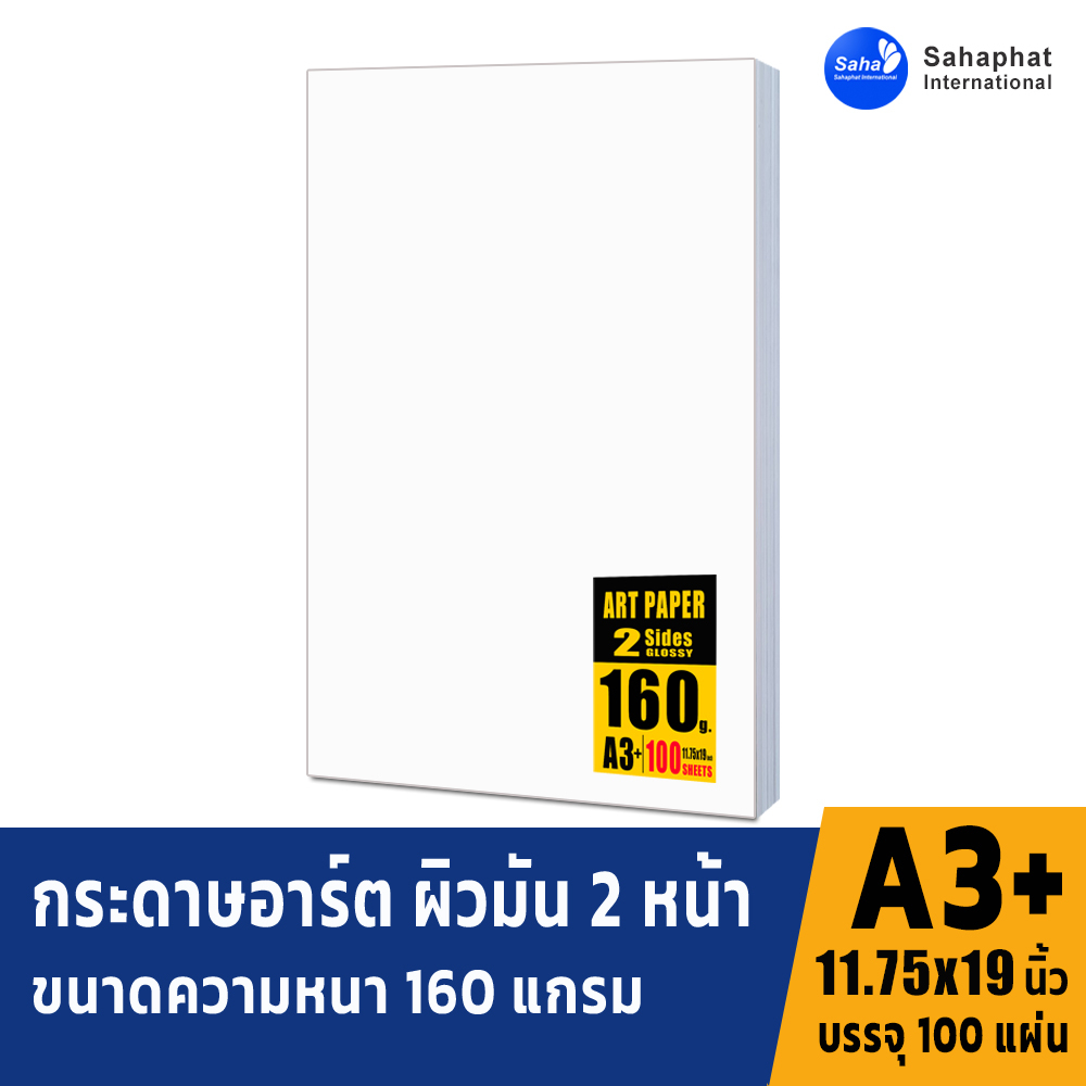 Sahaphat International กระดาษอาร์ตมัน A3+ สำหรับเครื่องพิมพ์เลเซอร์ พิมพ์ได้สองด้าน ขนาด A3+ ผิวมัน จำนวน 100 แผ่น