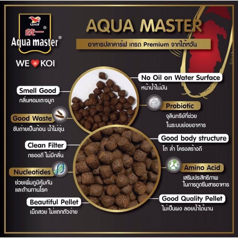 [1Kg.] Aqua Master (อความาสเตอร์) อาหารปลาคาร์ฟเกรดพรีเมี่ยม ขนาดถุง 1 กก. มีทั้งหมด 5 สูตร