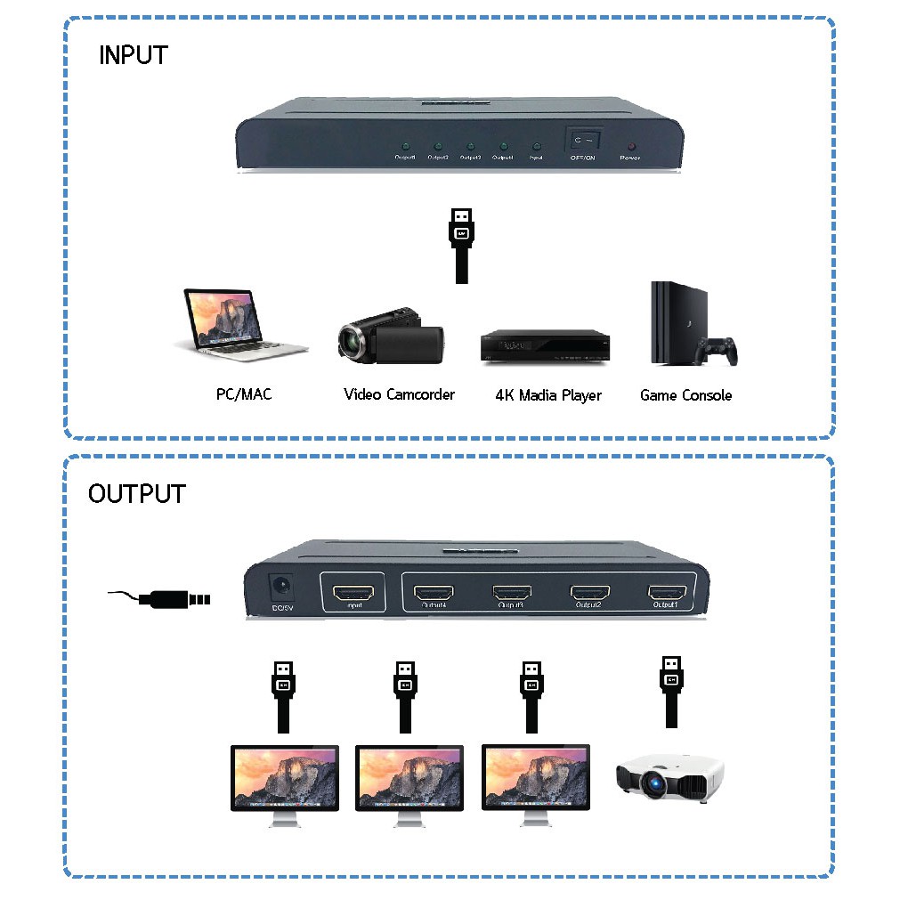 VANZEL HDMI Splitter 1 in 4 out กล่องกระจายสัญญาณ HDMI เข้า 1 ออก 4 รุ่น SP-H144K (Black)