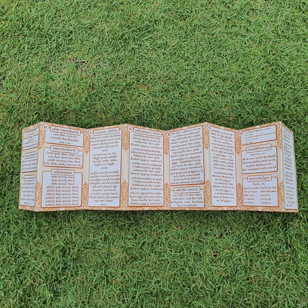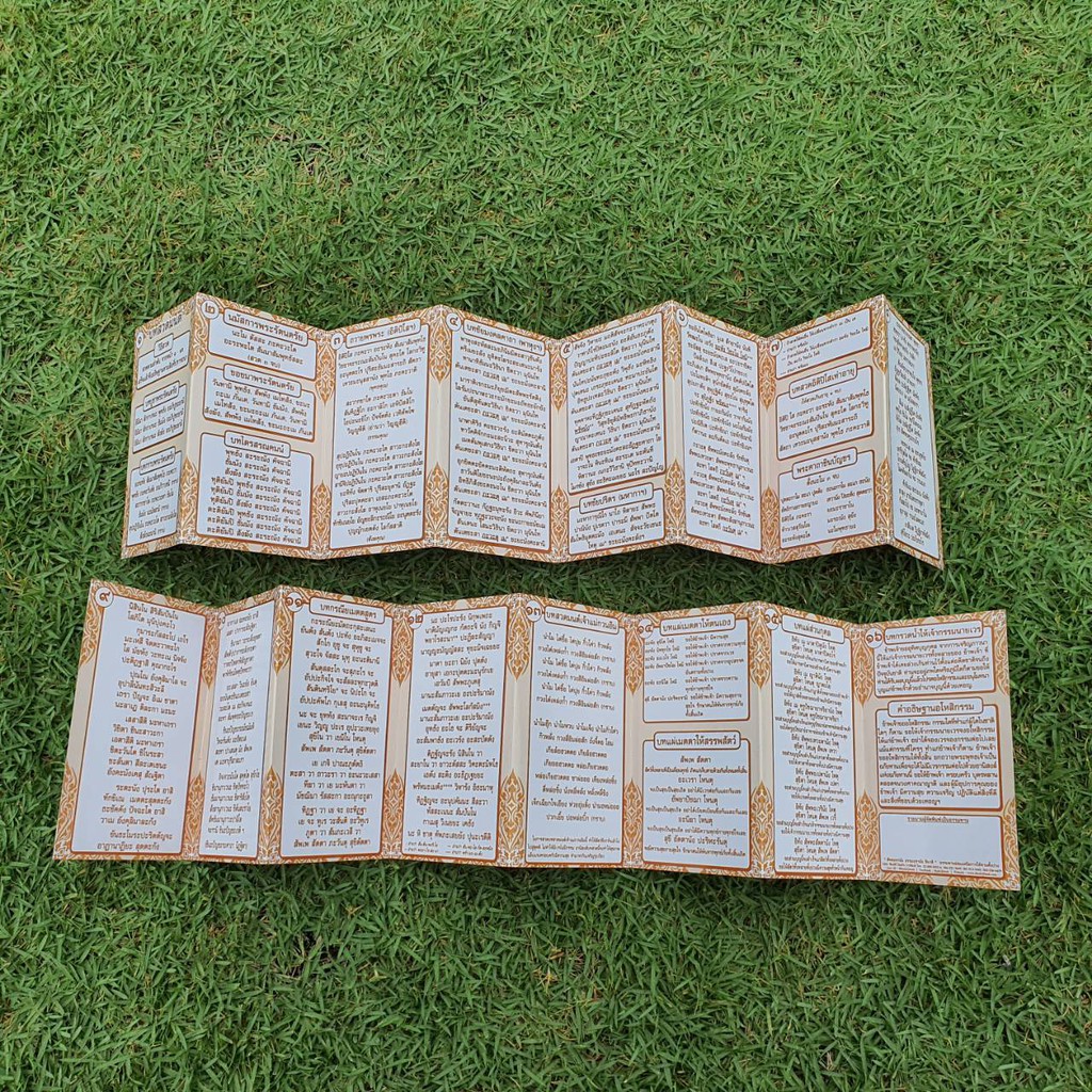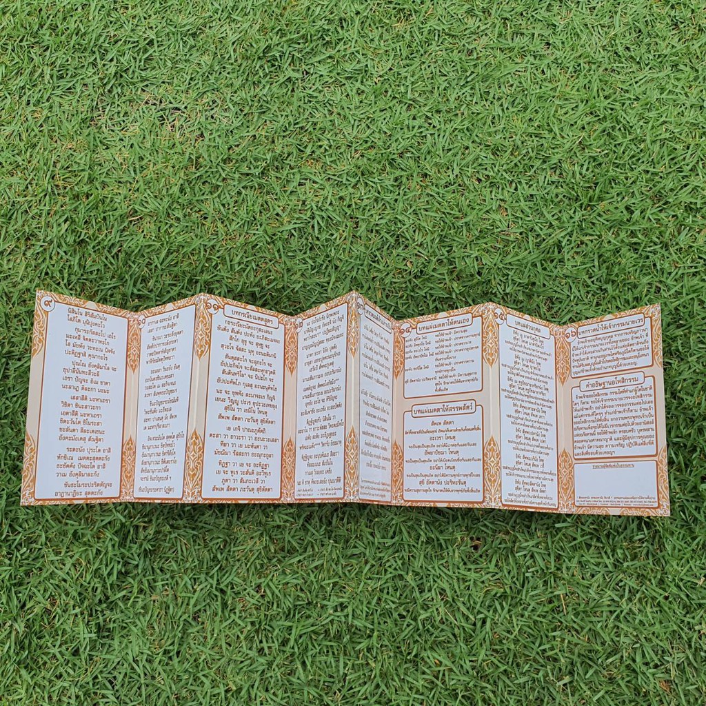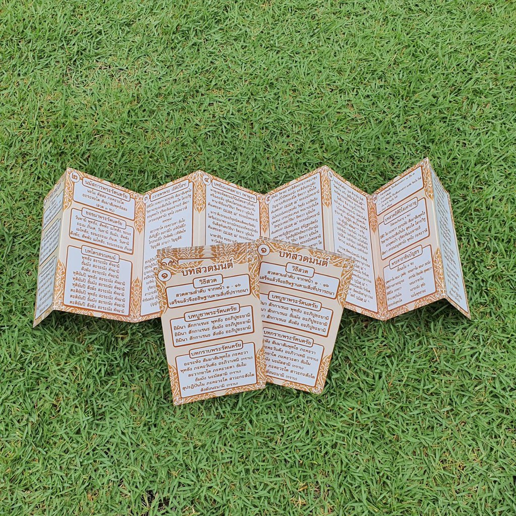 แผ่นพับสวดมนต์ลายไทย รหัส C001 ชุด ชัยมงคลคาถา แพ็ค 10 ใบ ขนาดเล็กมินิ พกพา ใส่กระเป๋าเสื้อได้เลย มีโค้ดส่วนลด!