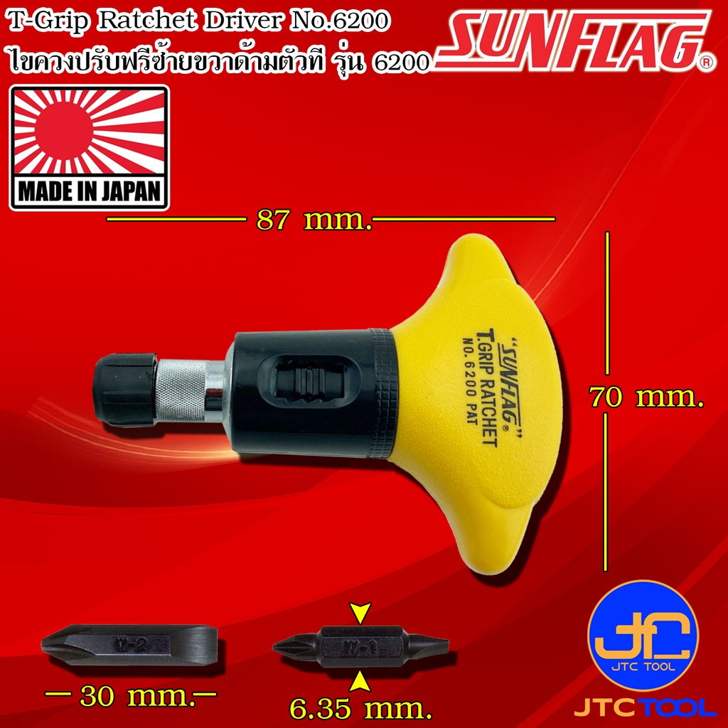 Sunflag ไขควงปรับฟรีซ้ายขวาด้ามตัวที รุ่น 6200 - T-Grip Ratchet Drivers No.6200