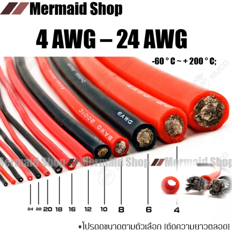[ตัดความยาวตลอด] 4AWG - 24AWG สายไฟซิลิโคน อ่อน ทนความร้อนสูง ทองแดงแท้เคลือบดีบุก
