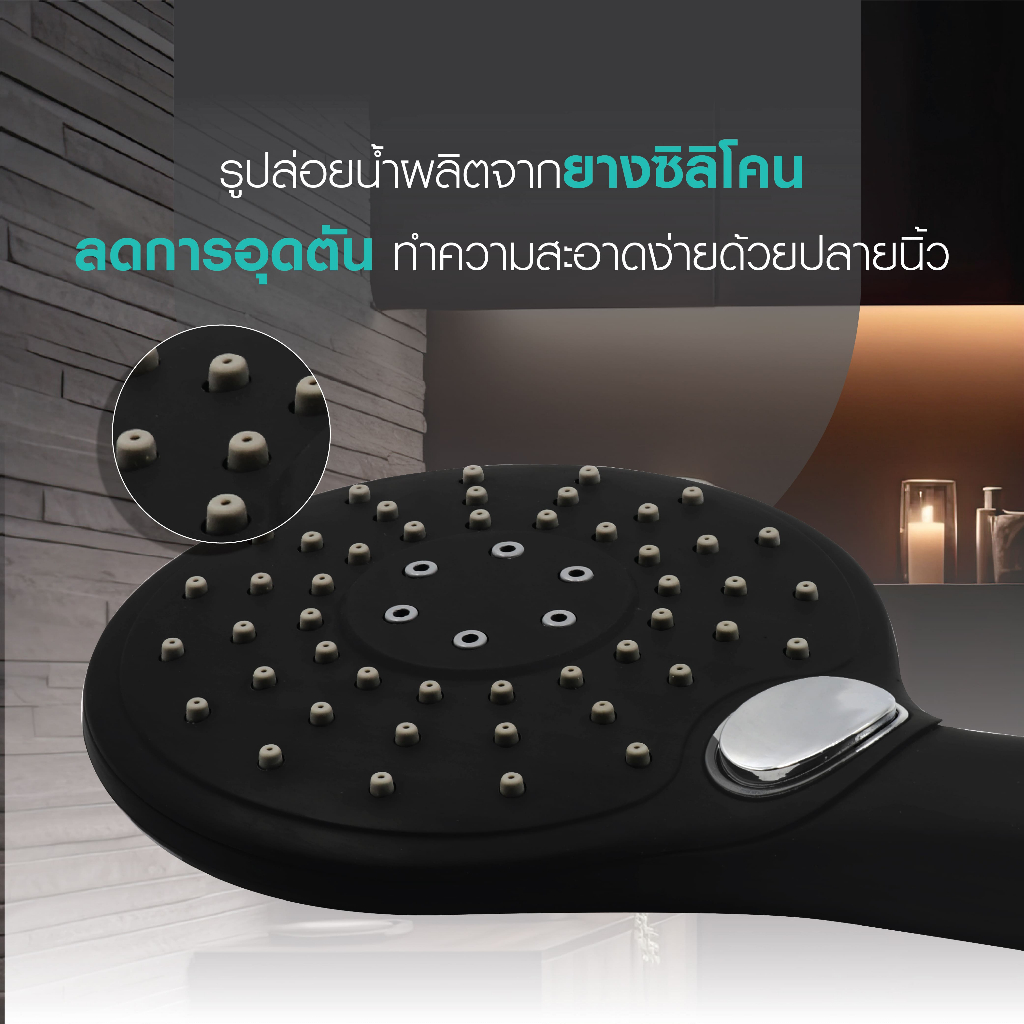 HONS Bathroom ชุดฝักบัวสายอ่อน SS308-BK ABS สีดำ สายน้ำนุ่มนวล อุปกรณ์ครบชุด รับประกันสินค้า 1 ปี