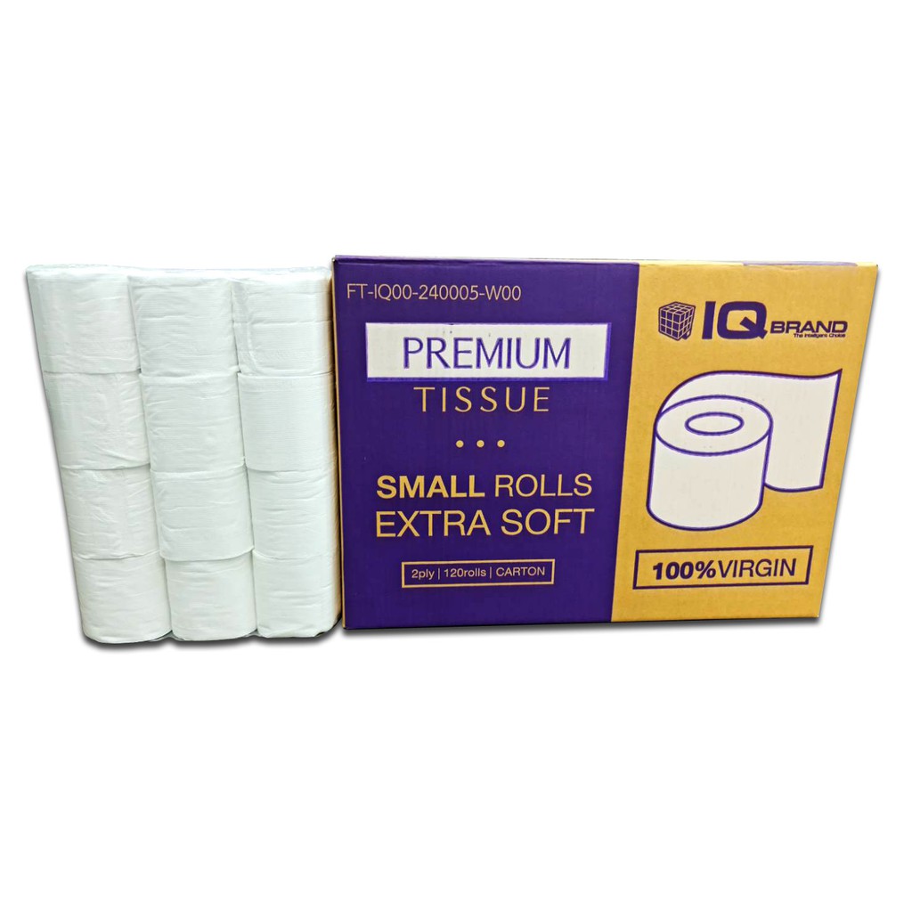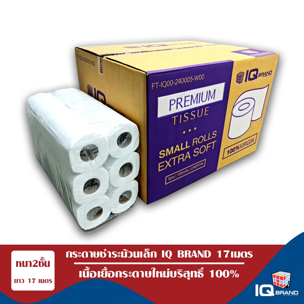 IQ BRAND กระดาษทิชชู่ม้วนเล็ก หนา 2 ชั้น ยาว 17 เมตร เยื่อกระดาษบริสุทธิ์ 100% (120 ม้วน / กล่อง)
