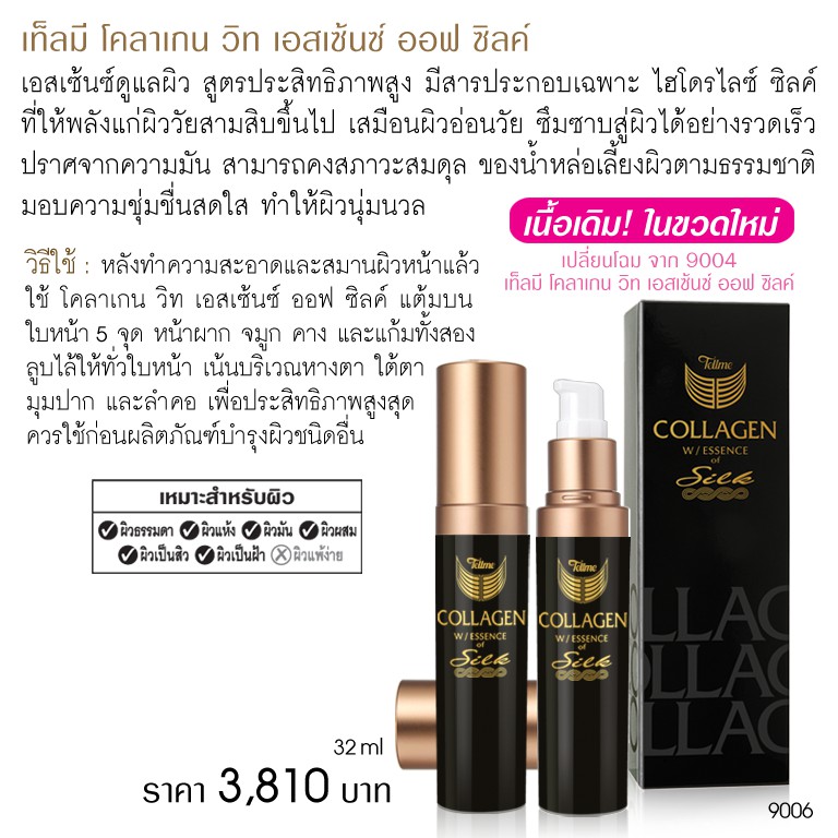 Tellme เท็ลมี โคลาเกน วิท เอซเซนซ์ออฟซิลค์ เอสเซ้นซ์ ครีมบำรุงดูแลผิว ชุ่มชื่น นุ่มนวล 9006