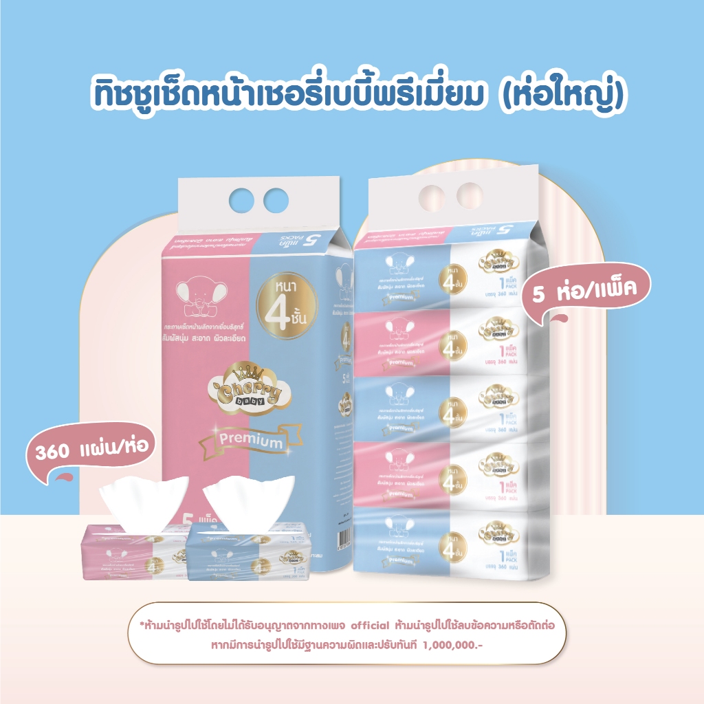[ 1 แพ็ค 5 ห่อ ] Cherry Baby กระดาษทิชชูหนา 4 ชั้น หนานุ่ม ไม่เป็นขุย ขนาดใหญ่ 1 ห่อ 360 แผ่น
