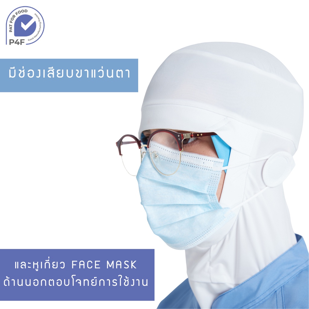 P4F - หมวกคลุมหน้า Hood Spandex ชุดทำงานโรงงานอาหาร เครื่องแบบอุตสาหกรรมอาหาร