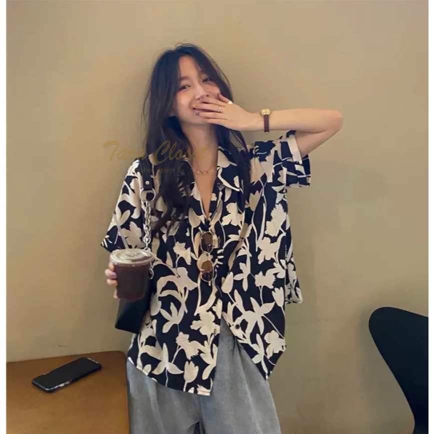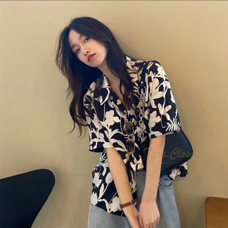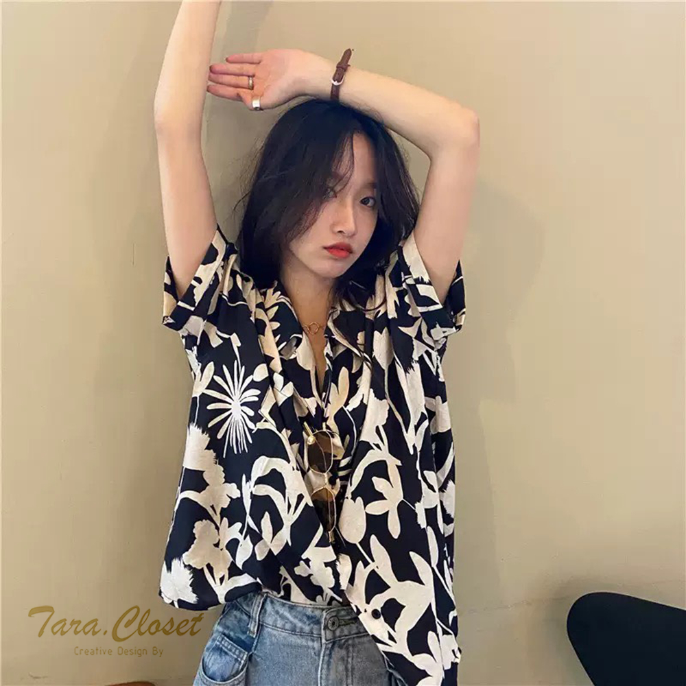 IT049 TARA Hawaii เสื้อเชิ้ตปกฮาวาย ลายดอก สงกรานต์ แขนสั้น กระดุมหน้า สไตล์เกาหลี เนื้อผ้าไหมอิตาลีพิมพ์ลายอย่างดี