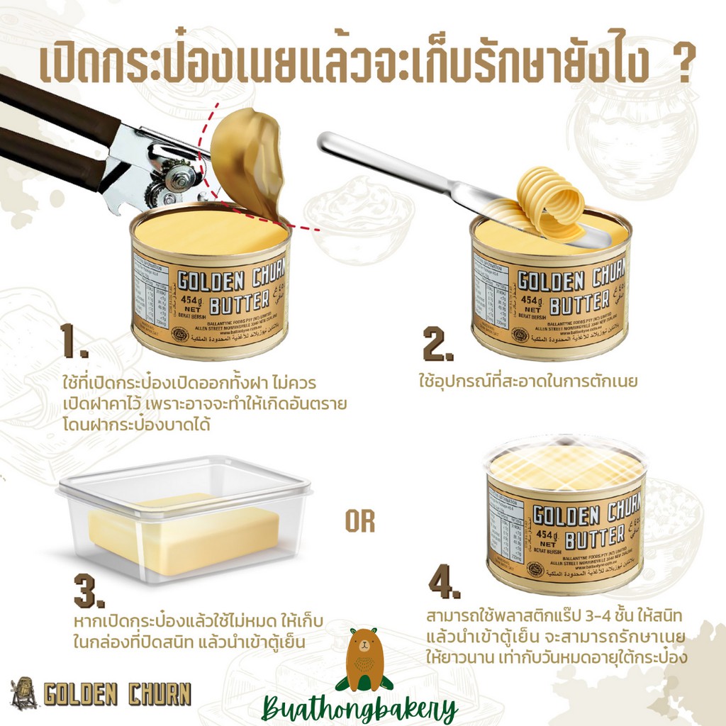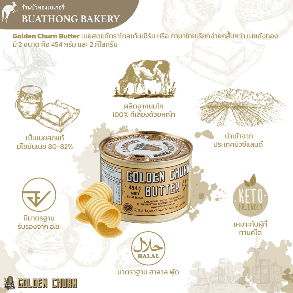 เนยถังทอง เนยสดเเท้ ชนิดเค็มในกระป๋อง Golden Churn New Zealand Tinned Butter เนยสดกระป๋อง