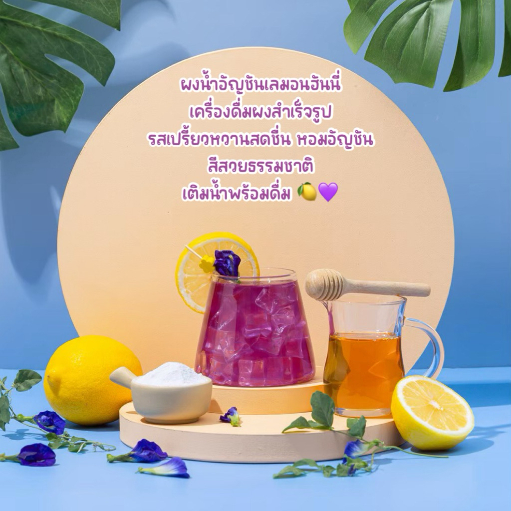 ผงน้ำอัญชันฮันนี่เลม่อน สูตรผสมน้ำผึ้งแท้ มะนาวแท้ น้ำอัญชันมะนาว 🍋 Openland Drinks