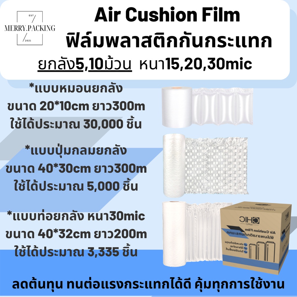 (ยกลัง5,6,10,12ม้วน) ฟิล์มพลาสติกกันกระแทก ยาว 300เมตร ทรงปุ่มกลม หมอน ท่อ Air cushion film / air bubble กันกระแทก