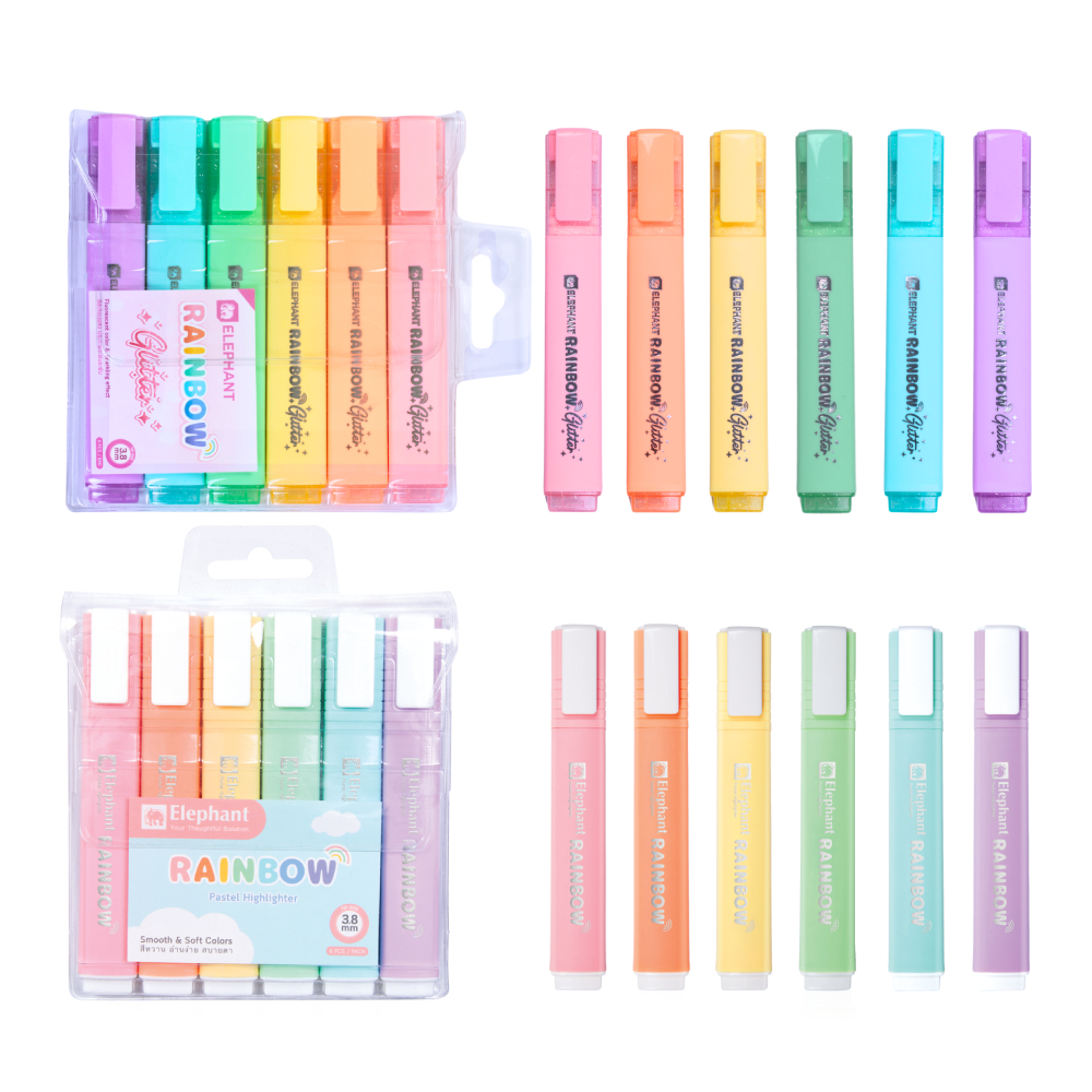 Elephant ตราช้าง ปากกา ปากกาไฮไลต์ เน้นข้อความ เรนโบว์ (คละสี) จำนวน 6 ด้าม/ แพ็ค