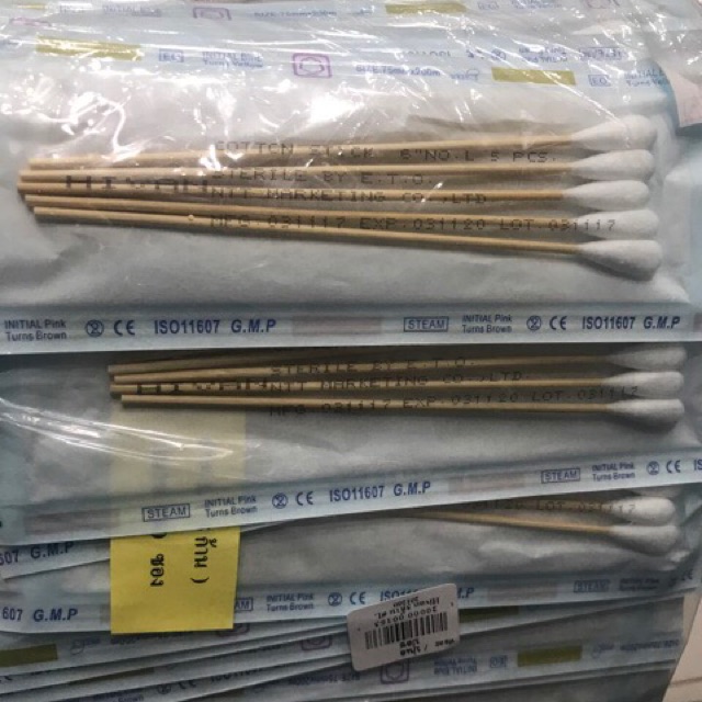 สำลี 5 ก้าน sterile (แพค20 ซอง) สำลีก้าน สำลีไม้ i-care สำลีพันไม้ สำลีพันก้าน