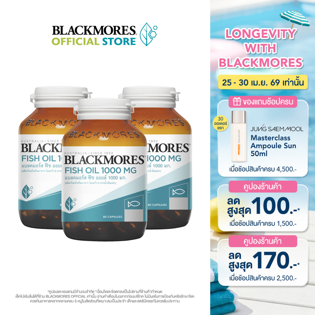 [Pack 3 ชิ้น] Blackmores Fish Oil 1000mg (80 caps) แบลคมอร์ส ฟิช ออยล์ 1000 มก. ขนาด (80 แคปซูล)