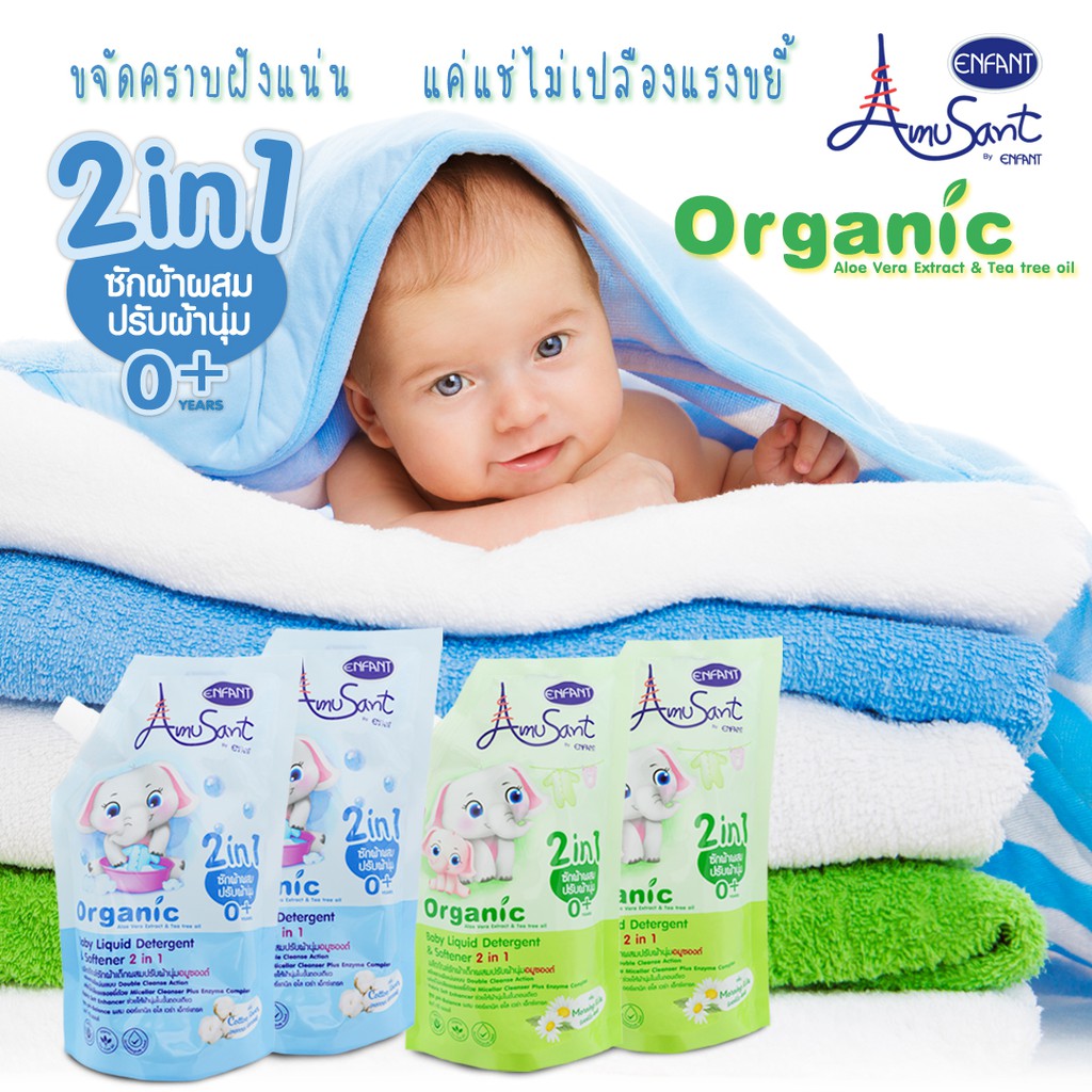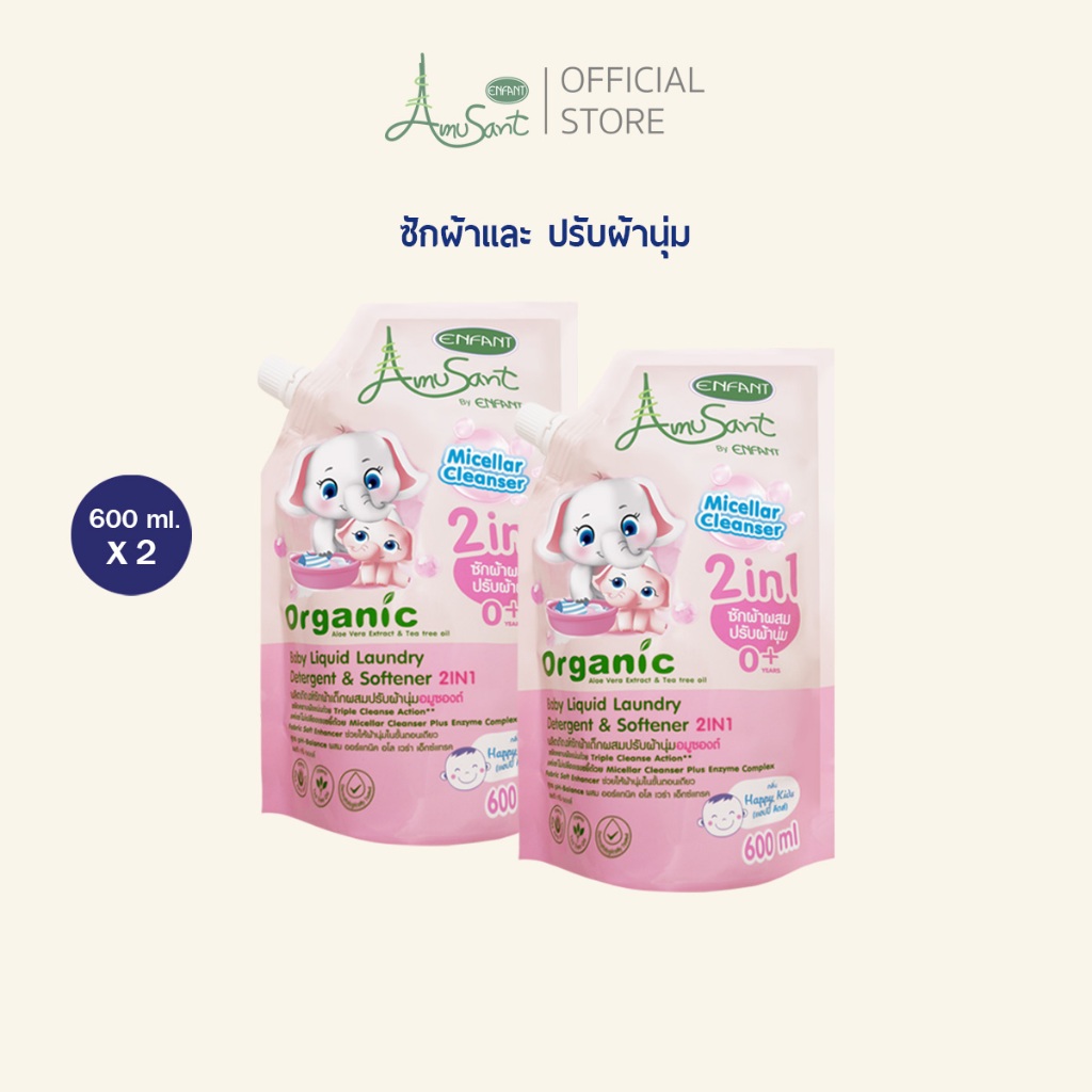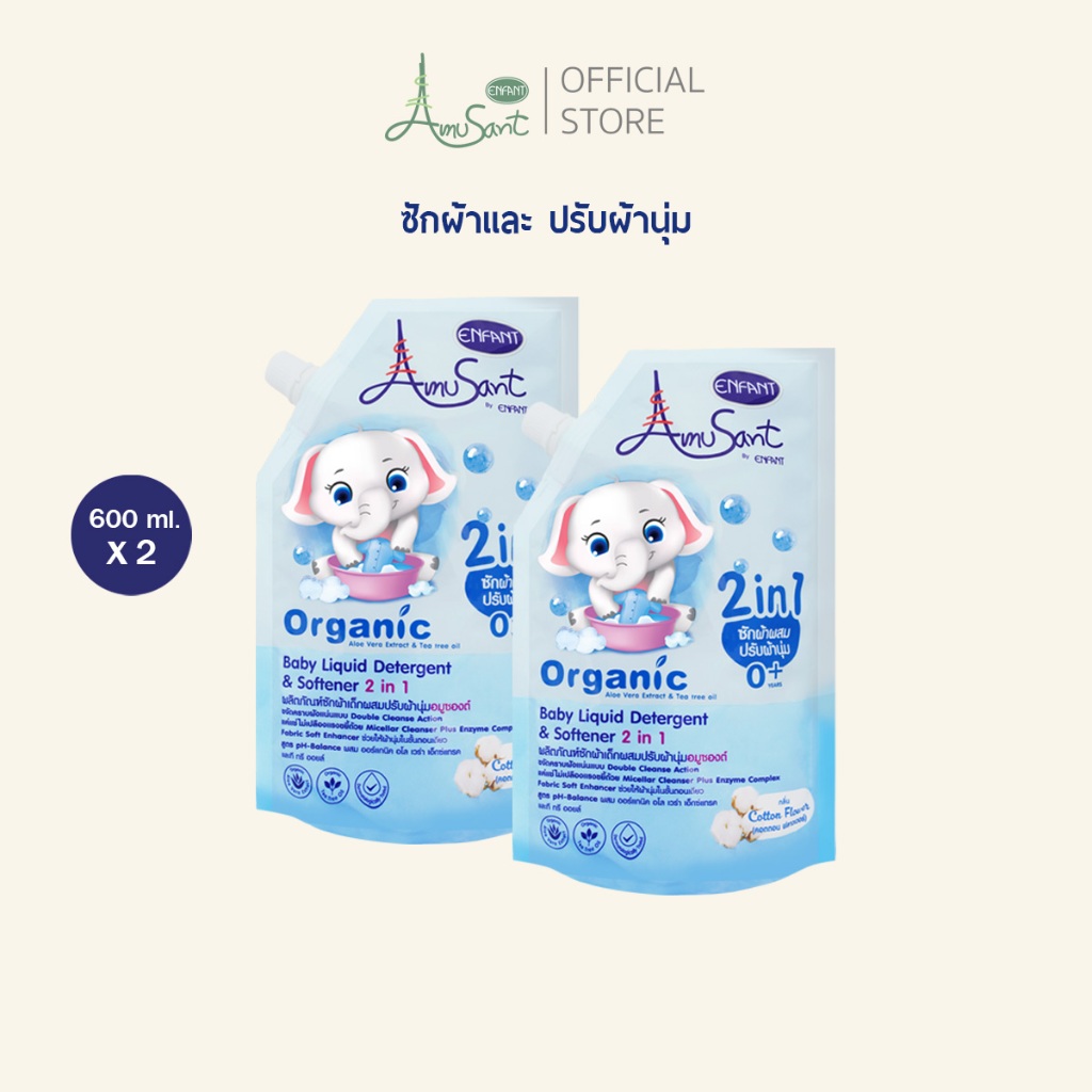 Amusant ซื้อ 1 แถม 1 น้ำยาซักผ้าสำหรับเด็ก ผสมปรับผ้านุ่ม 2 in1 สูตรออร์แกนิค ขนาด 600 มล. อมูซองต์