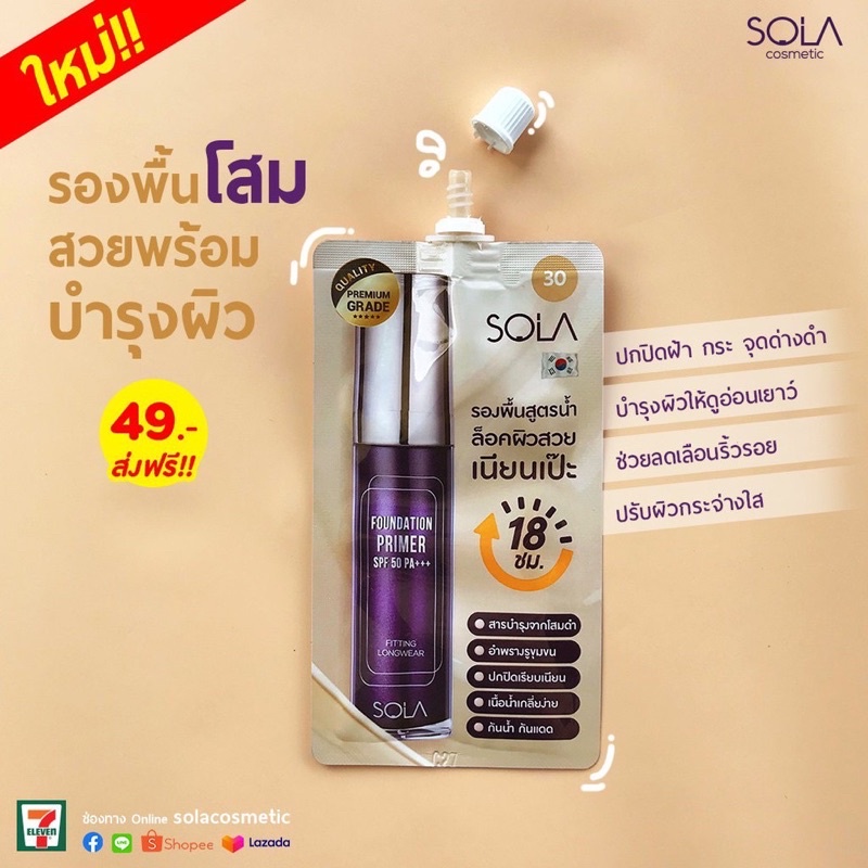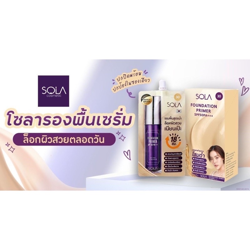 (กล่อง6ซอง)SOLA Foundation Primer spf50pa+++ผลิตภัณฑ์รองพื้นผสมไพรเมอร์ 7มลx6ซอง16