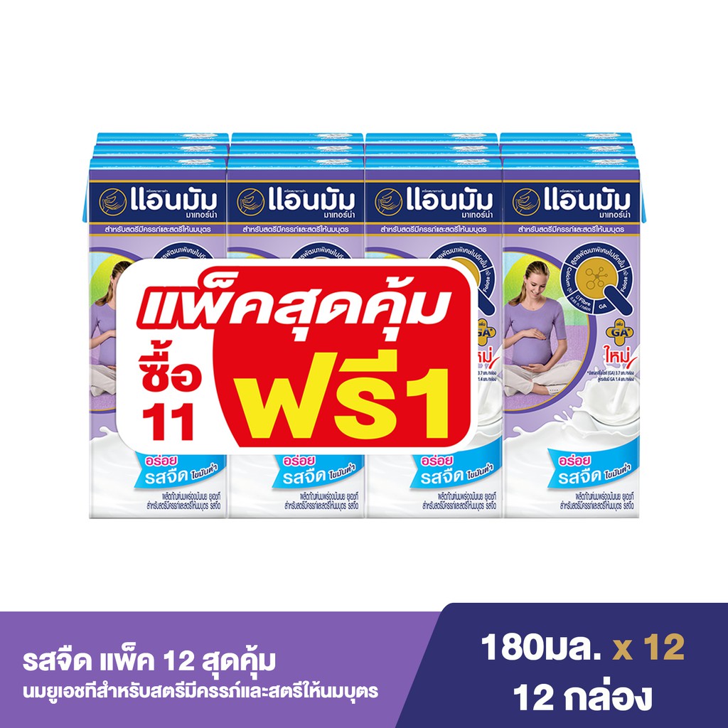 Anmum แอนมัม มาเทอร์น่า นมกล่องยูเอชทีสำหรับคนท้อง คุณแม่ตั้งครรภ์ รสจืด แพ็ค 12 (12 กล่อง):จืด ปริมาณ 180มล