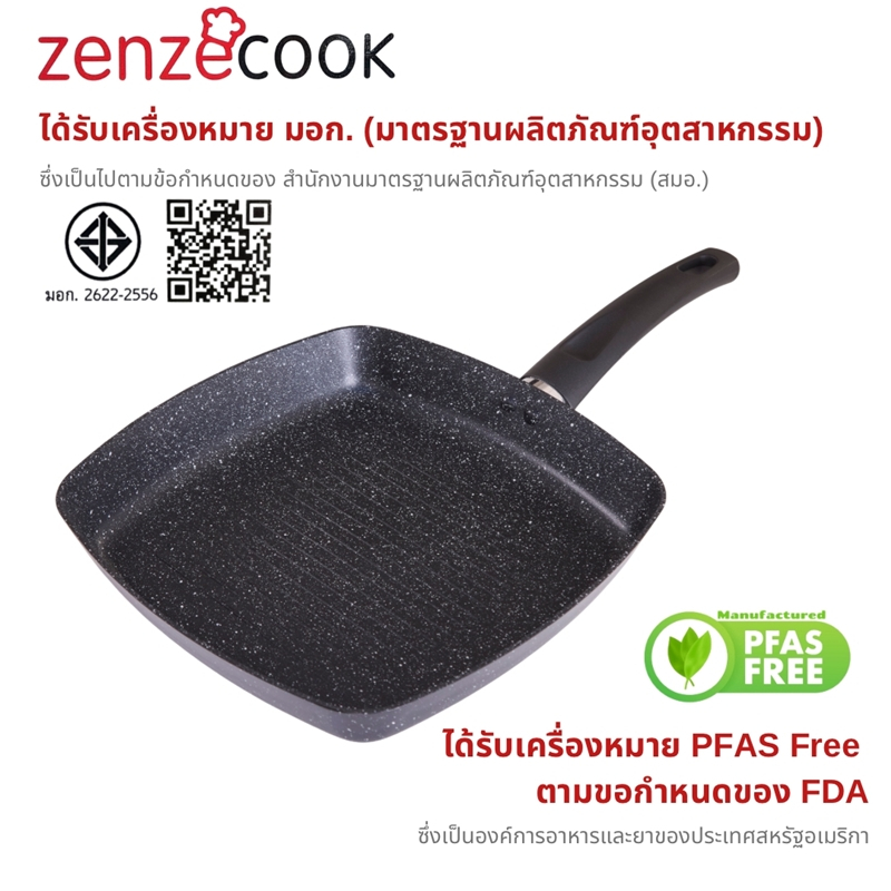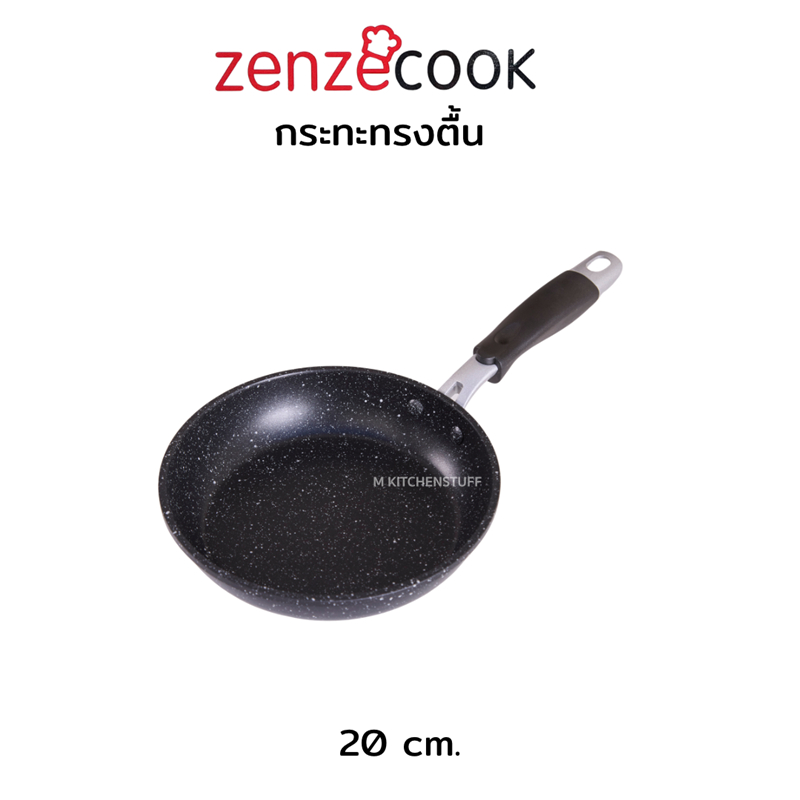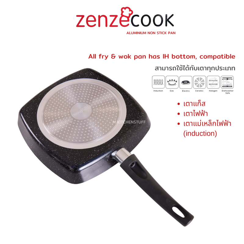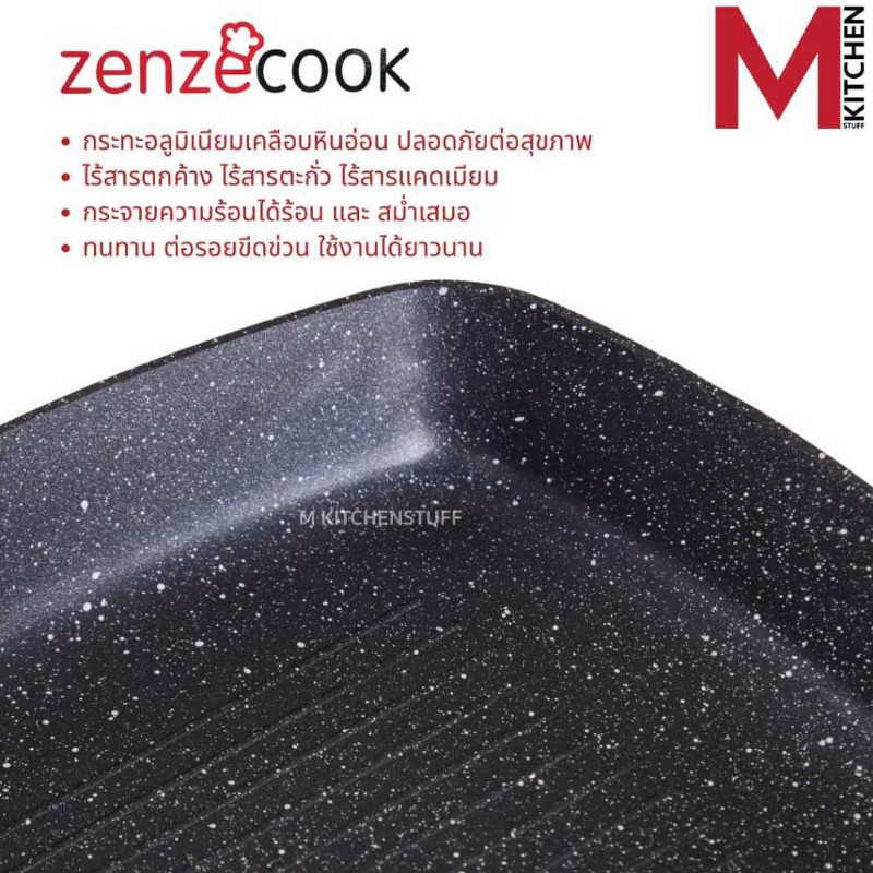 M KITCHEN กระทะ กระทะย่าง กระทะเคลือบหินอ่อน 5 ชั้น ทรงตื้น 20/24/28ซม Zenzecook สามารถใช้กับทุกเตา (A1)