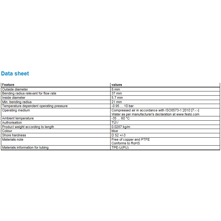 สายลม/ท่อลม [เฟสโต้] PUN-H-8X1,25-BL (197385) #FESTO #Plastic tubing มาตราฐานเยอรมัน